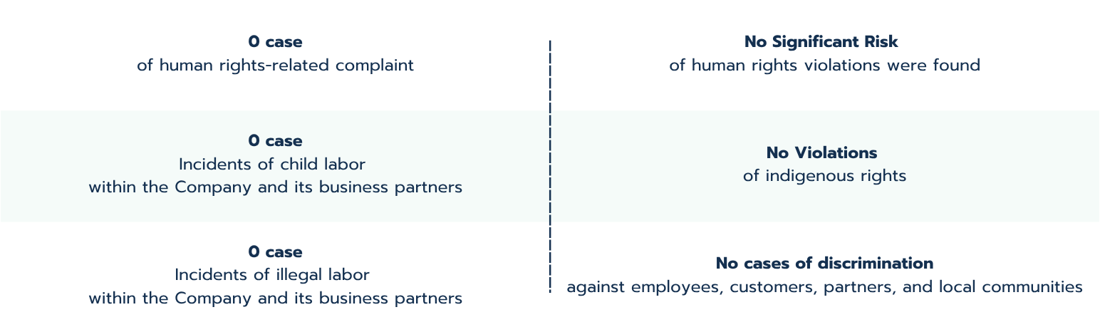 The Company places strong importance on and is committed to conducting its business in accordance with the principles of good corporate governance, demonstrating responsibility toward society and all stakeholders. In this regard, the Company’s Sustainability Development Department has established a Human Rights Policy to serve as a framework for the protection of the rights of employees and related parties, such as staff and customers.