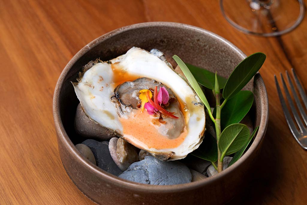 At the heart of this exclusive set menu are the exceptional flavours of Surat Thani, artfully curated to showcase the region’s finest local ingredients. The highlight dishes include hand-harvested oysters from a local farm carefully handpicked by Chef himself, topped with an oceanic burst of sea grapes, balanced with a zesty ponzu and a fiery kick of nitro sriracha. The delicate wild-caught Samui lobster carpaccio is paired with bold Tom Yum caviar and a crunchy peanut cracker, while the light and flavourful Samui mackerel consommé is elevated by tangy star gooseberry and crispy fried dried shrimp. The wild-caught Samui red snapper, ordered from local fisherman, is perfectly complemented by a fragrant yellow curry and the rich, sustainable Surat crab sauce. Served alongside are tender Thai Wagyu beef cheeks, complemented by a smooth local squash mousse. To finish, indulge in the creamy sweetness of Koh Phangan coconut milk ice cream, made from the finest coconuts of the island's traditional farms, offering a refreshing conclusion to this culinary journey. Lady Finger bananas are from local gardens in Koh Samui. Gardeners and farmers in Koh Samui like to grow them on the mountains such as in Mae Nam Subdistrict or Na Mueang Subdistrict. Therefore, we can find this local ingredient in Koh Samui.