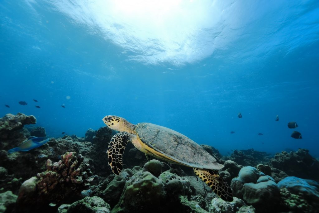 พบ “เต่ากระ” ใกล้กับทรายลากูนมัลดีฟส์