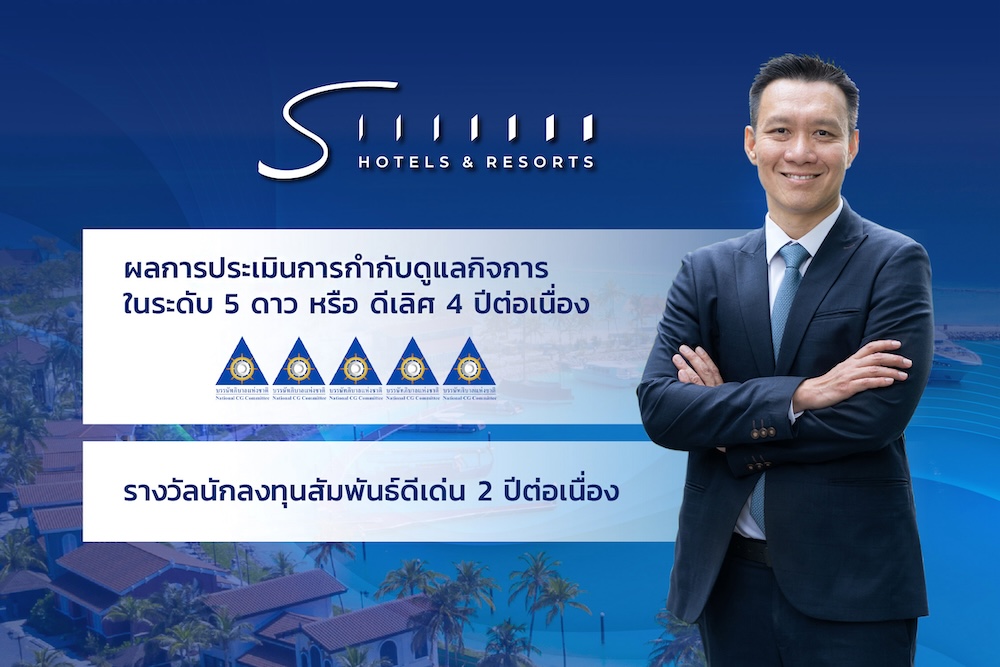 เอส โฮเทล แอนด์ รีสอร์ท ประกาศความสำเร็จ คว้าคะแนน CGR 5 ดาว “ดีเลิศ”ต่อเนื่องเป็นที่ 4 พร้อมรางวัลนักลงทุนสัมพันธ์ดีเด่น
